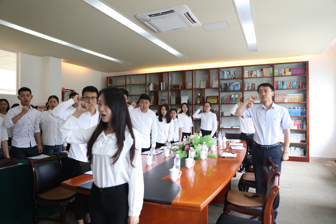 再次,参会人员全体起立,在张子悦(学生)副书记的带领下重温了入团誓词仪式。