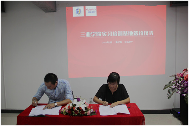 三亚德佑地产案场部总监杨帅与副院长高一兰代表双方签署了合作协议。