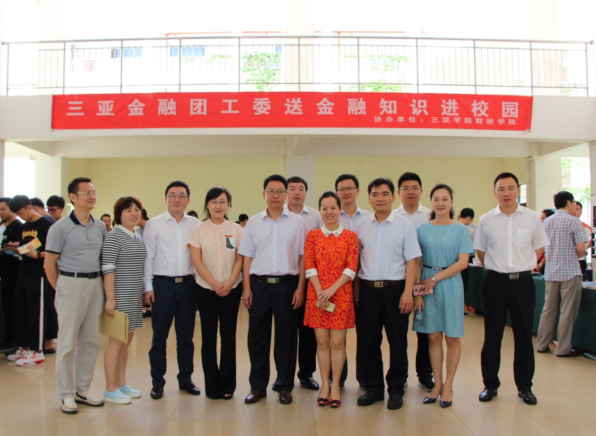 (财经通讯社 讯)为进一步普及金融基础知识,增进广大师生对现代金融产品的知识和了解,提高金融理财和金融安全防范意识, 2017年5月13日上午九点半在书新五号楼五东106的教室举办了商务文化节系列活动之“三亚金融团工委送金融知识进校园”活动。此次活动除了是三亚金融团工委主办、三亚学院财经学院协办之外,更有工商银行三亚分行、三亚国开行、三亚光大银行等八个银行参与此次活动。参加此次活动的人员有:三亚银监分局党委书记周华局长、三亚市金融办姚晓君主任、三亚国开行林文副行长、三亚工行李峰行长、三亚光大银行党委委员姜岳鹏、中信银行武涛行长、兴业银行辛新华副行长、浦发银行裴佳行长、平安银行陈锐副行长、海南银行三亚分行彭小军副行长、邮储银行三亚分行占军副行长和我院副院长高一兰、我院办公室主任兼团委书记曹瑞吉以及各班同学代表。