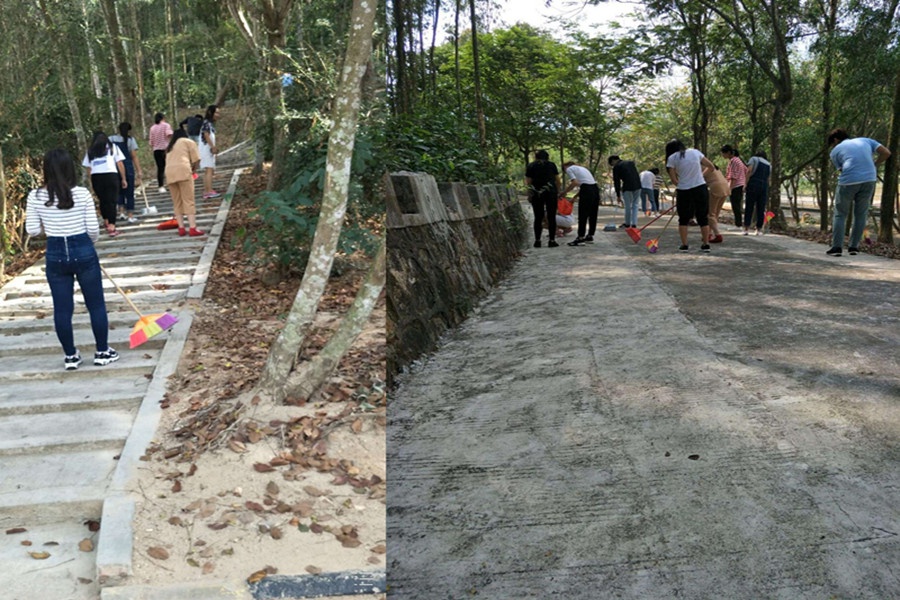 此次活动在教学楼、宿舍楼、操场等场所进行卫生打扫,参加了此次活动的有财经学院志愿者。 活动开始前统一着装,佩戴统一标识,经过动员、分工后,大家便开始进行有条不紊,认真细致的拔草工作。虽然天气很炎热,但志愿者们都没有被困难吓倒,个个卯足干净,用双手认真打扫,坚持到底。他们不怕脏,不怕累,积极主动的到每个角落捡垃圾,干得热火朝天,大家分工协作,有条不紊。领队每隔一小时与青协负责人联系,确保参与活动人员的安全。经过几个小时的辛勤劳作,校园的角落已经几乎没有了垃圾的存在,大家拍拍脏兮兮的手,看着整洁的校园,脸上露出欣慰的笑容。