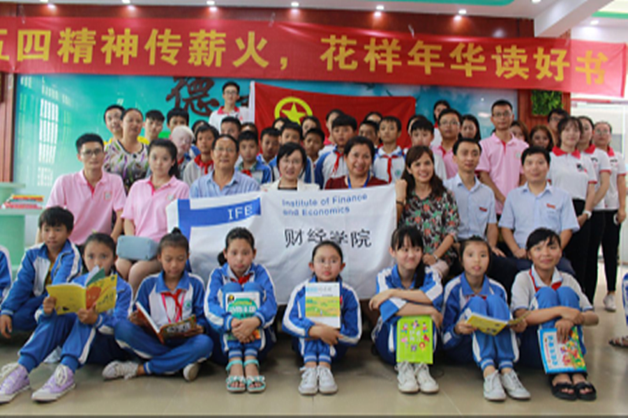 2016年5月3日 在财经学院党支部书记陶宏书记和高一兰院长带领下,与学院各专业老师、青协实践部和团委干事一起去荔枝沟小学参加读书交流会活动,为小学捐赠图书。在活动之前,经过青协宣传部的大力宣传,许多志愿者拿出手中的书籍,我们也在网上购买了许多适合小学生青少年的读物望小朋友们快乐成长。在此活动中我们青协与团委积极配合,为小朋友们奉上了诗朗诵和舞蹈。分享了读书的方法与感悟。此次活动传递了五四的精神,也让小朋友们在花样年华中得到了好的升华。