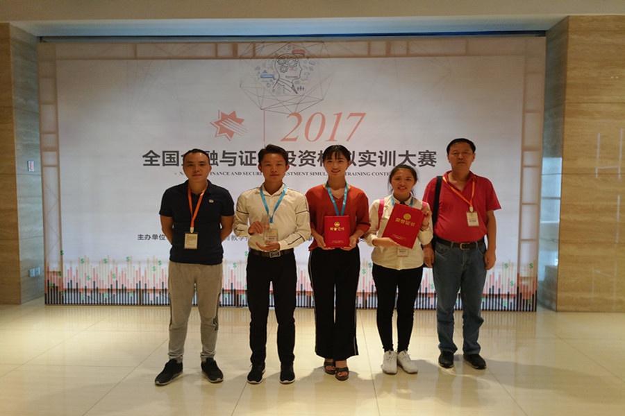 由全国金融职业教育教学指导委员会主办,深圳国泰安教育技术股份有限公司承办的“2017全国金融与证券投资模拟实训大赛”总决赛8月12日在深圳市王牌国际酒店圆满结束。我院由何敏敏、王美齐、吴国栋等同学组成的“王者队”喜获团体亚军的好成绩;由陈玺羽、陈思贝、陈昆吾等同学组成的“荣耀队”喜获团体季军的好成绩。王永波老师、贺群舟老师获得“优秀指导教师奖”。