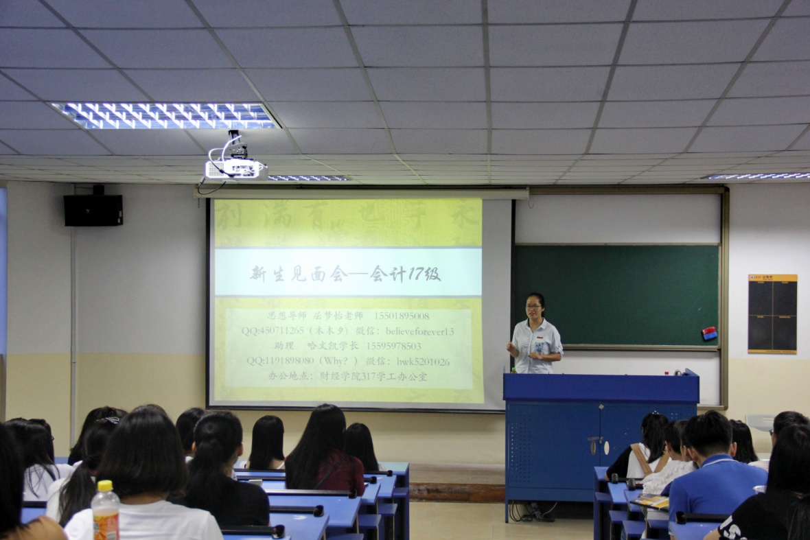 (财经通讯社 讯)为了能使大一新生以更快更好的状态进入大学生活,促进新同学与老师之间的交流。我院会计专业1705-1708班于9月17日晚分别在东201、东206举行了同学们新学期的第一次班会。思想导师屈梦怡老师携大三导助哈文凯与大一新生一起参加了此次班会。
