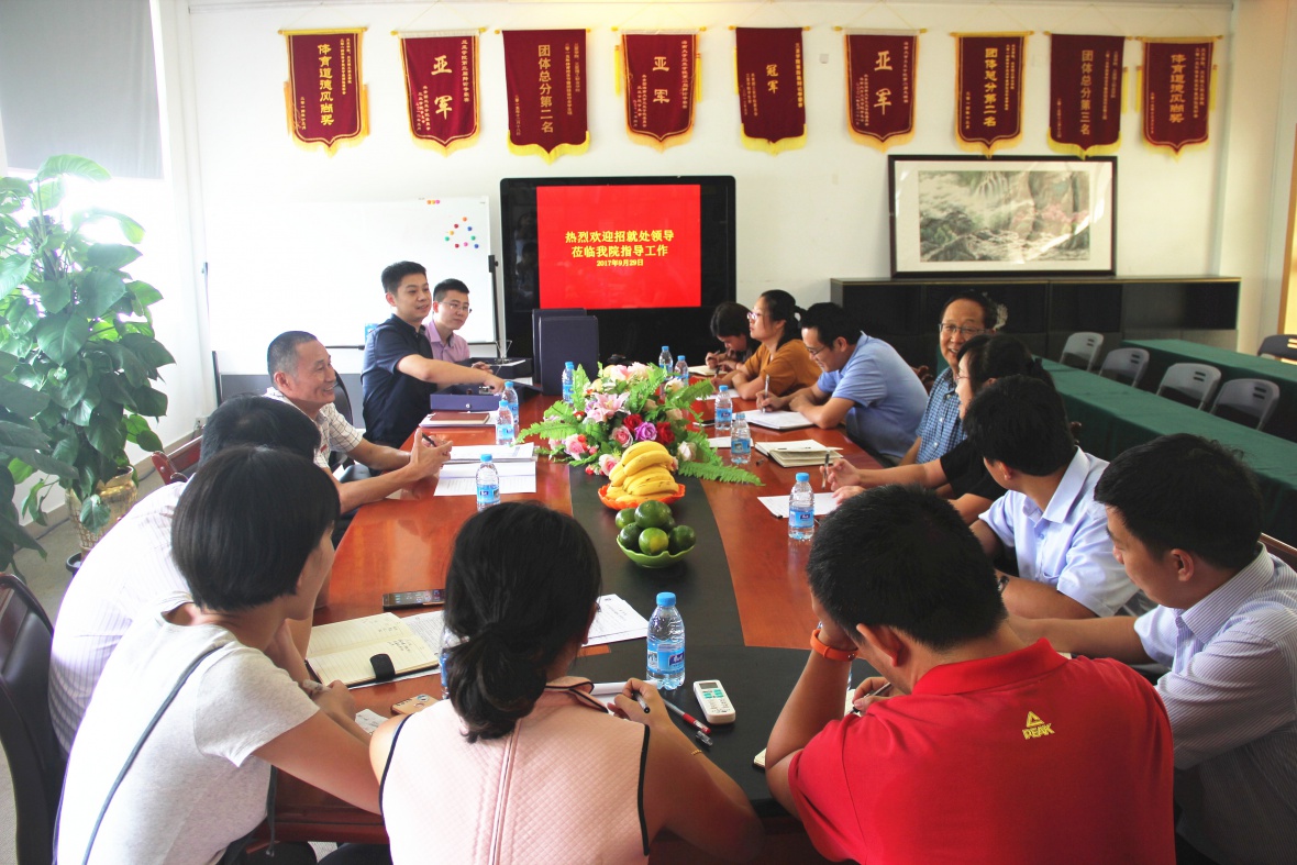 陶宏书记表示招生就业处领导莅临我院检查指导毕业生就业工作,体现了学校对我院学生就业工作的高度重视,并对招生就业处领导莅临我院检查指导工作表示热烈欢迎和诚挚感谢,对做好今后的就业工作提出了几点建议。