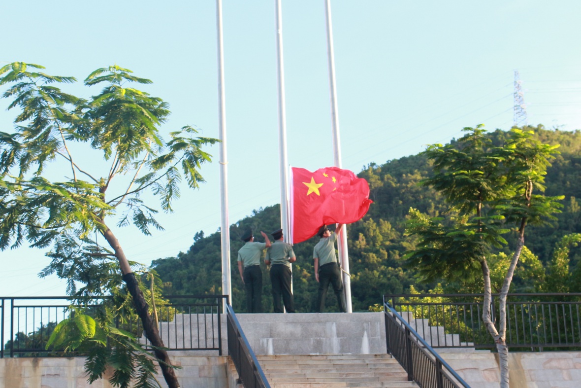 升旗仪式在令人激情澎湃的鼓号声中拉开帷幕,随后英姿飒爽的旗手们伴着庄严嘹亮的国歌扬起国旗,全体师生带着崇高的敬意、喜悦的心情凝视着冉冉升起的五星红旗,无不感到自豪。
