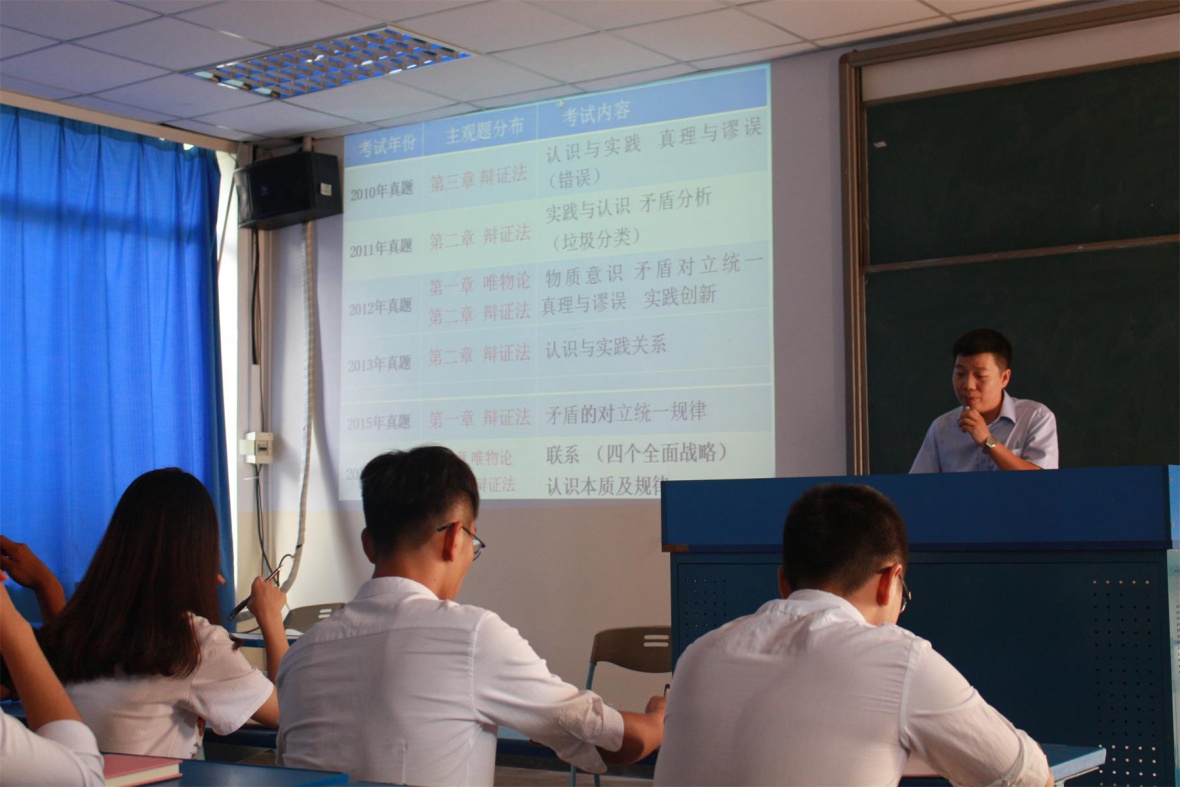 讲座开始张老师介绍了我院历年来的考研具体情况。之后对考研政治科目中的重点及难点进行了解析。刚刚闭幕的中国共产党第十九次全国代表大会是2018年的政治考试的重点,板块所占分数的比例较大。认真学习贯彻党的十九大精神,学习好领会好贯彻好习近平新时代中国特色社会主义思想。张老师提出:要理解历史中的各个重大事件、要找准考试的规律、要深入理解考题才是关键。在 2018年的考研复习中,需要熟记与8有关的重大历史事件,这也是往年题目中出现与年份最后数有关的出题惯例。在讲座的最后,由张老师现场解答了准备考研同学的相关问题,令在座的学生收获颇丰。