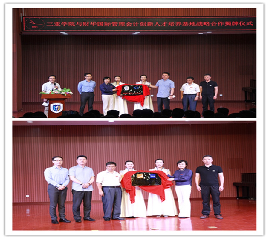 11月18日,双方在书会堂正式举办“三亚学院与财华国际管理会计创新人才培养基地”战略合作揭牌仪式与“管理会计精英俱乐部”成立揭牌仪式。北京财华国际董事长马兵先生、利乐包装大中华区财务总监(兼财华国际职业规划专家)刘庆华先生,财经学院、丝路商学院等学院的领导和师生代表共同参加揭牌仪式。