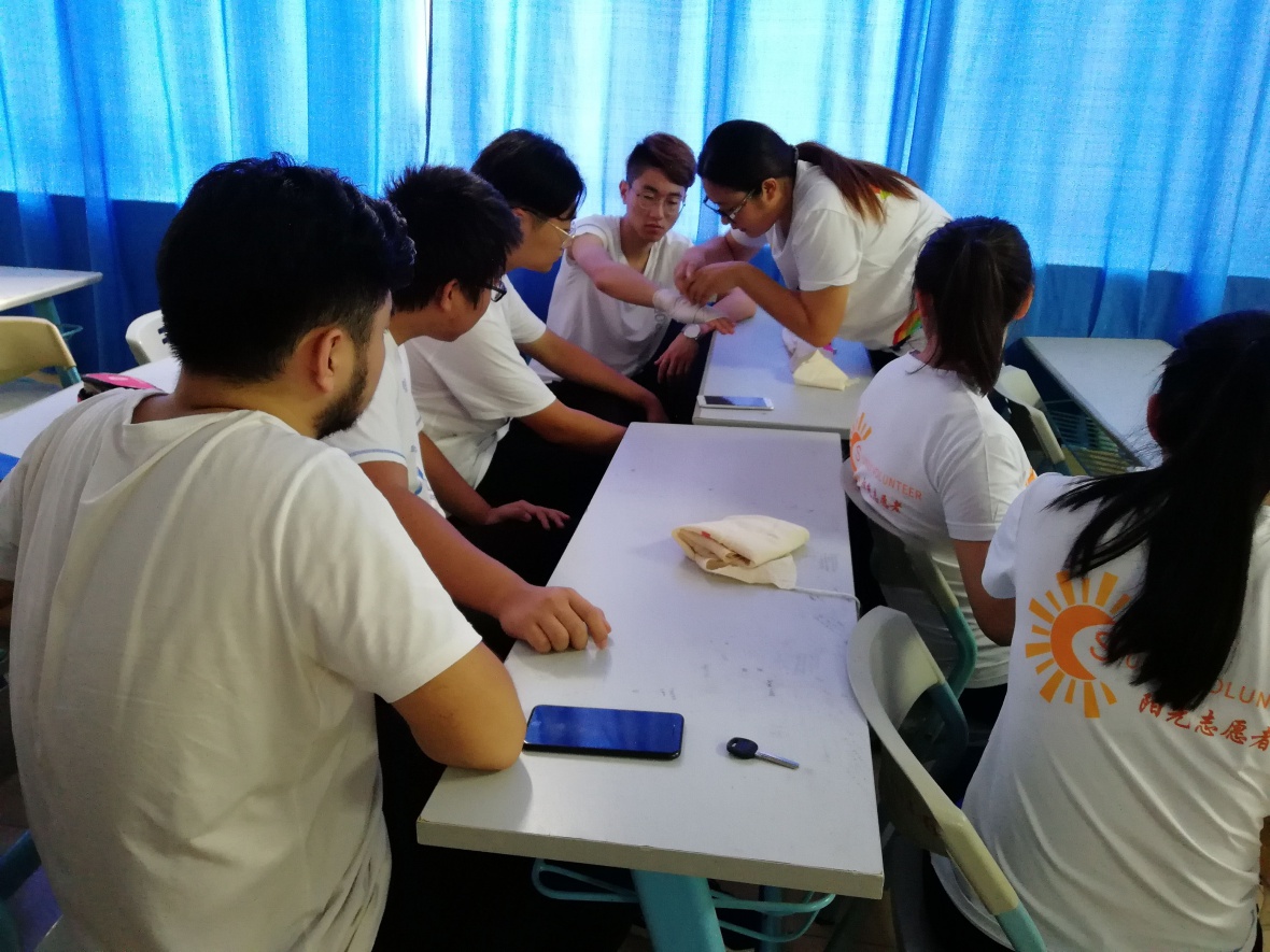 阳光护援,旨在培养大学生应急救援意识、自救互救能力,为践行无私奉献,服务社会提供技巧手段,提高服务意识,实践奉献、友爱、互助、进步的志愿服务精神。