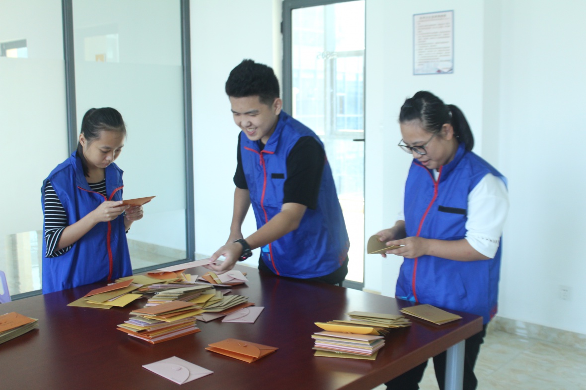 志愿者怀着期待的心情,来到老师办公室门口,礼貌地敲响办公室的门,随着一声温柔的“请进”,进入到老师的办公室,先简单的介绍了一下自己的,然后将信件送到老师手中。青协志愿者们跑过了一间又一间的办公室,用汗水换来了老师们的欣喜的笑容,让老师们能够感受到学生们对他们的爱。邮差志愿者奔走在社科楼,帮助同学完成书信传递。虽然比较辛苦,但他们明白,他们派送的不仅仅是一封信,而是一份情谊,通过书信来表达对老师想表达的情感。看到老师们流露出感动的眼神,便是他们坚持下去的动力。取信,奔走送信,信件送达。这看似简单的过程,却承载着对老师满满的感恩,对老师满满的尊敬。