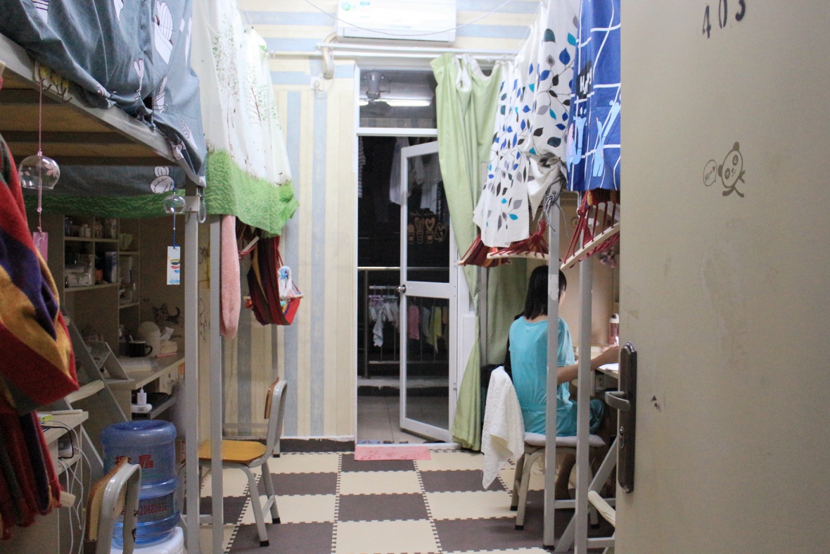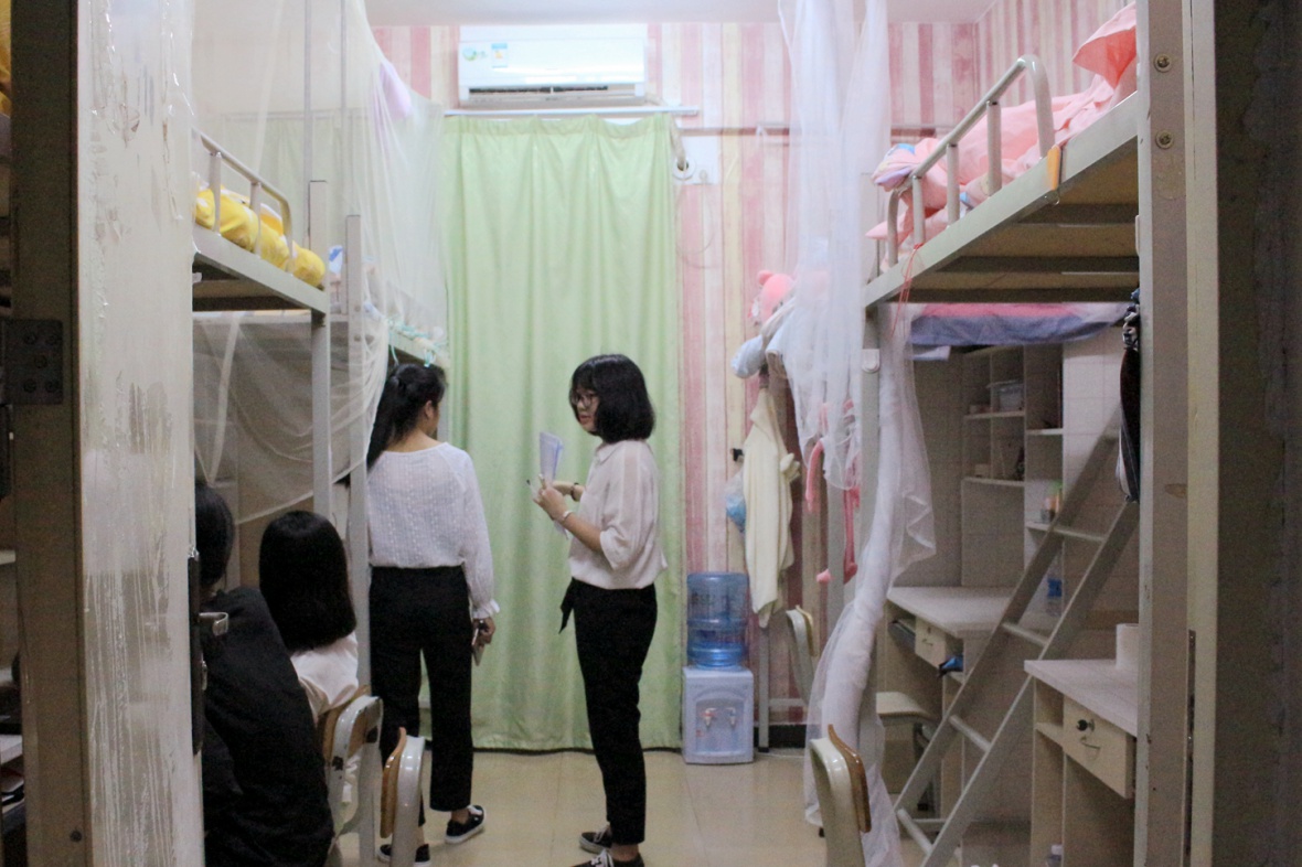 晚上8:55,自律部和生活部的相关工作人员在北23宿舍楼底集合,分配好各自的任务之后,开始了检查工作。参加活动的寝室早已收拾的明亮整洁,有的寝室风格复古,棕栗色条纹地贴搭配青竹墙纸,蚊帐是印有阴阳鱼的水墨风格,空地摆放一张小茶几,一派隐士格调;有的则是动漫风格,墙上挂满动漫海报,桌柜则以暗黑色星空壁纸搭配,桌子上整齐的摆放各种手办,如同置身漫展;还有的宿舍一看就是军事迷,迷彩色壁纸打底、深绿色蚊帐好似军用帐篷,桌柜上零散的贴满了士兵突击,战狼的海报,看起来四人都是军事迷。大多数的宿舍并没有这么这么风格明显,但也都收拾的整整齐齐,床铺上安了不同风格的床帘、桌面清洁干净,贴上了喜欢的壁纸,整个寝室给人感觉清新明亮。居住在这种寝室中绝对是一件幸福的事。