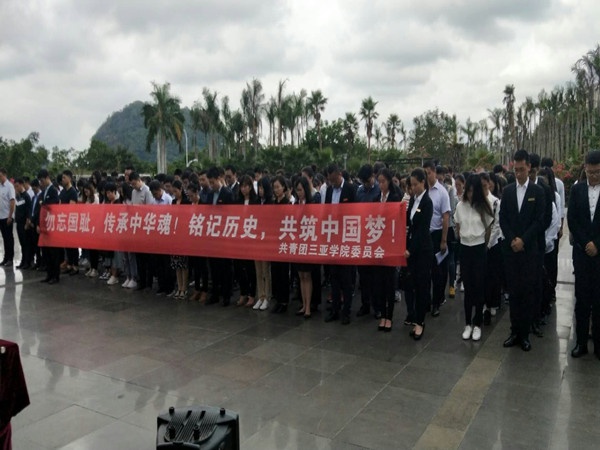 国行公祭,祀我国殇。为此,三亚学院于2017年12月13日中午12点整,在书德楼喷泉广场举行“国家公祭日”纪念活动。校团委书记赵晓乐老师、校团委副书记陆体锋老师,各二级学院的团委书记、思想导师、党员代表、优秀学生代表等两百余人参加了此次活动。