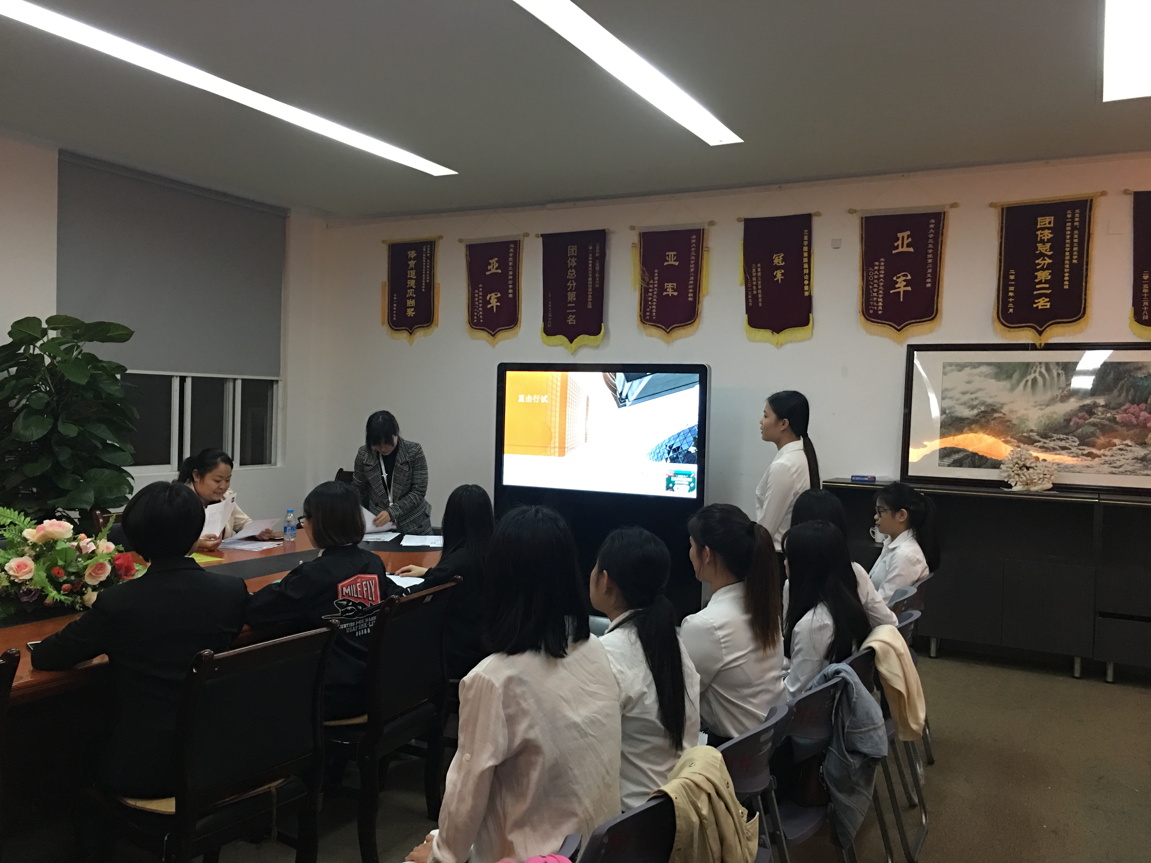 会议主要有三项内容。首先进行大四毕业生面试自我介绍,主要负责人就面试者提出要求,并针对岗位职责、仪容仪表礼仪、面试技巧等提出要求。负责人尤其注重强调仪容仪表礼仪,如发式、面容、口腔、手部、体味等细节问题。帮助他们进一步提升面试技巧。他们在经过一轮的自我介绍后,面试官指出了很多明显的问题。对于初入社会的毕业生,大部分人会显得比较青涩紧张。之后负责人详细的指导了他们关于面试的技巧和细节。并且让她们依次重新进行了面试。
