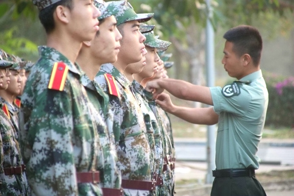 在军训中,财经学院的同学们在教官的监督下站得笔直,个个昂首挺胸,教官响亮地说:“大家站好了,如果有身体不舒服的喊报告......"在部队教官亲切的关怀和严格训练下,在短短的几天里,齐步走、正步走、齐步变正步、解散、集合及分列式等预定训练科目已初见成效。教官手把手教,学生认真的学,在军训队列展示中,方队整齐,精神饱满,步伐矫健、口令准确、声音嘹亮。