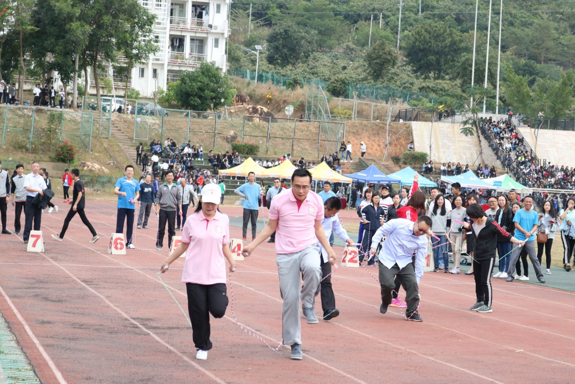 此次校运会,老师们一扫平时生活里的紧张工作,参与到体育运动中去。无论结果是好是坏,老师们都享受着运动中所感到的快乐。在团队的合作中,使老师之间凝聚力得到了提升,同时,让老师和同学们一起感受体育欢乐节的氛围,使师生彼此都有了进一步地了解,使师生关系更加地亲密。