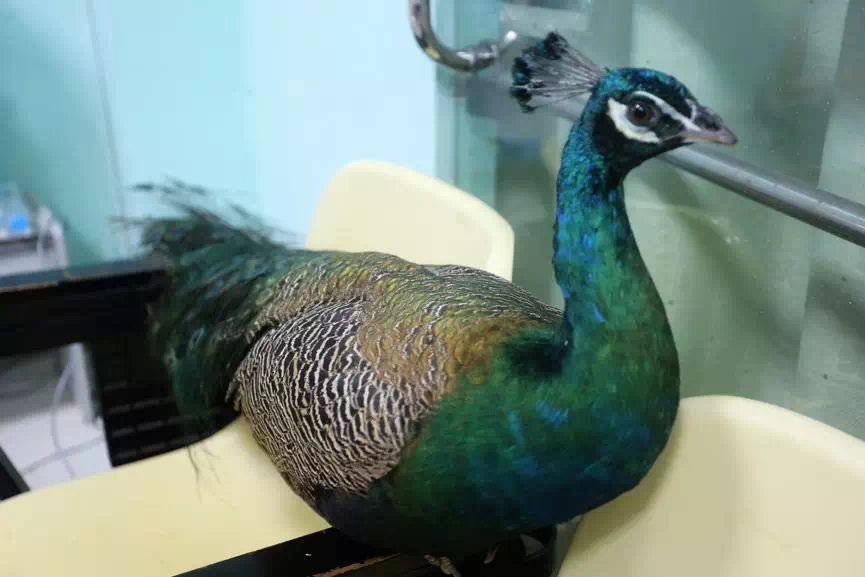 经采访,起初同学们十分的惊讶与欣喜,毕竟孔雀来校实属少见也难得一遇。当事男生也很迷惑,不清楚孔雀为什么会飞到这里来,是属于人工饲养或者是野生动物园,不确定是否因为受伤而至此。出于一片善心与保护动物的目的,313和314寝室的几位目击者觉得应该快速先把孔雀保护起来避免受到伤害,于是立即联系了校园管理部门和林业局,向他们反映了这个情况来妥善安置孔雀。
