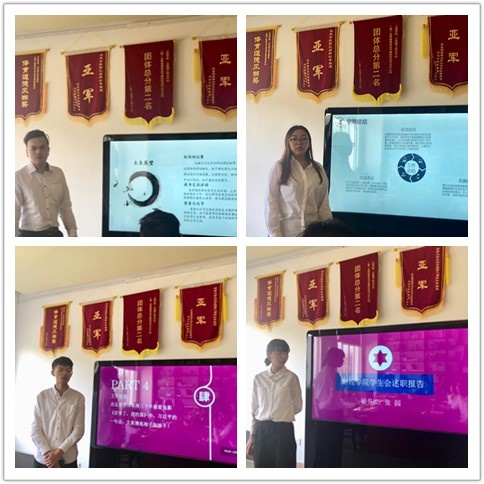 随后述职的学生会副主席范一同学,提到在上学期他所指挥的自律文明月和寝室文化节活动,提高了同学们的自律意识和宿舍安全意识; FEBA篮球赛,激发了同学们的体育热情。同时,范同学表示,作为文案类部门出身,对举办活动的经验不足,偶尔临场反应不及时,并且有些活动后续跟进不够及时。因此,范同学认为,要提前想好活动应急方案,用来对应活动中出现的突发情况。述职的最后,范同学希望这个她以视为家的学生会可以越来越好。