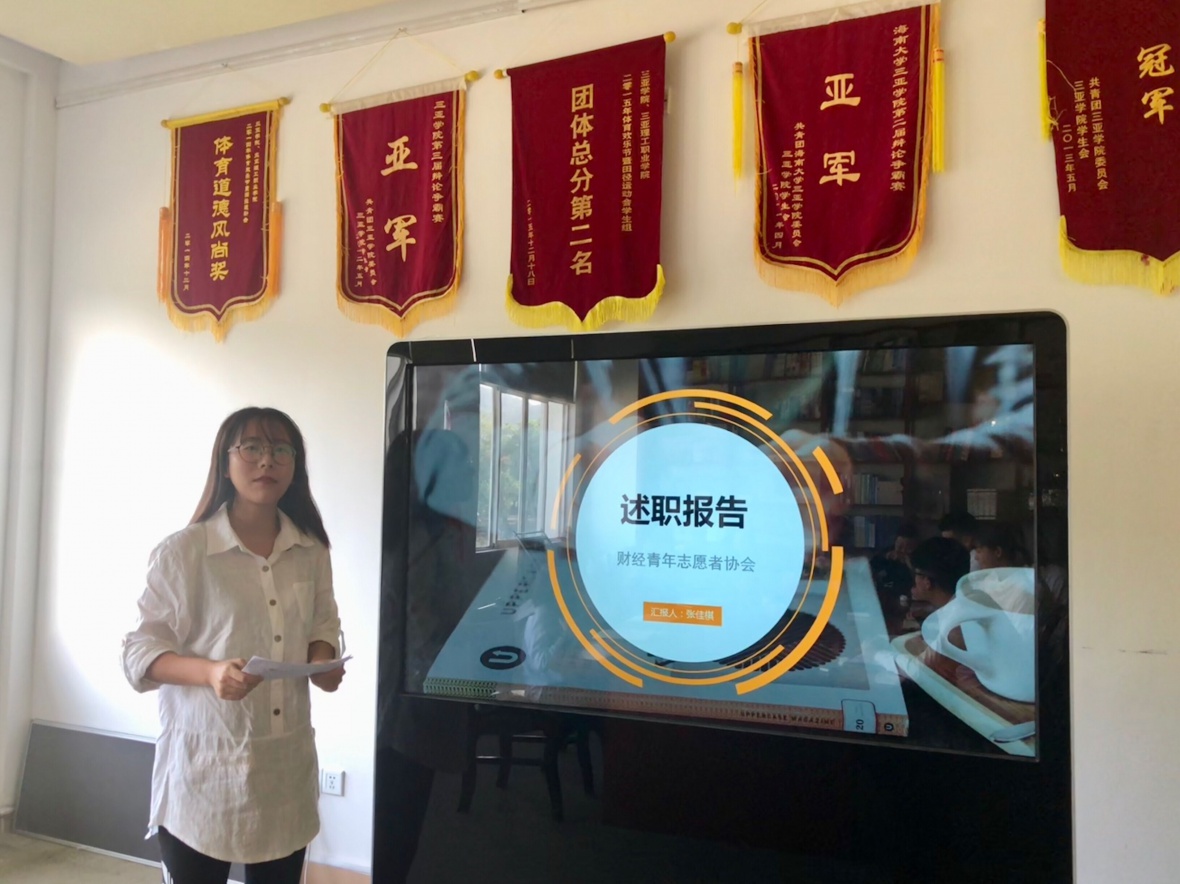 之后,青协的副理事长周元波进行述职报告。周同学表示,在上学期中,财经学院共进行了154次志愿者活动,其中校外活动41次,校内则有113次。如此多的活动,足以看出财院学子的奉献精神。此外,周同学也简要阐述了上学期青协秘书处与宣传部的任务和职责。最后,周同学指出,在本学期,青协将开展盲人电影、梦想认领等更加丰富多彩的活动,以增进各组织之间,学生之间的友谊。