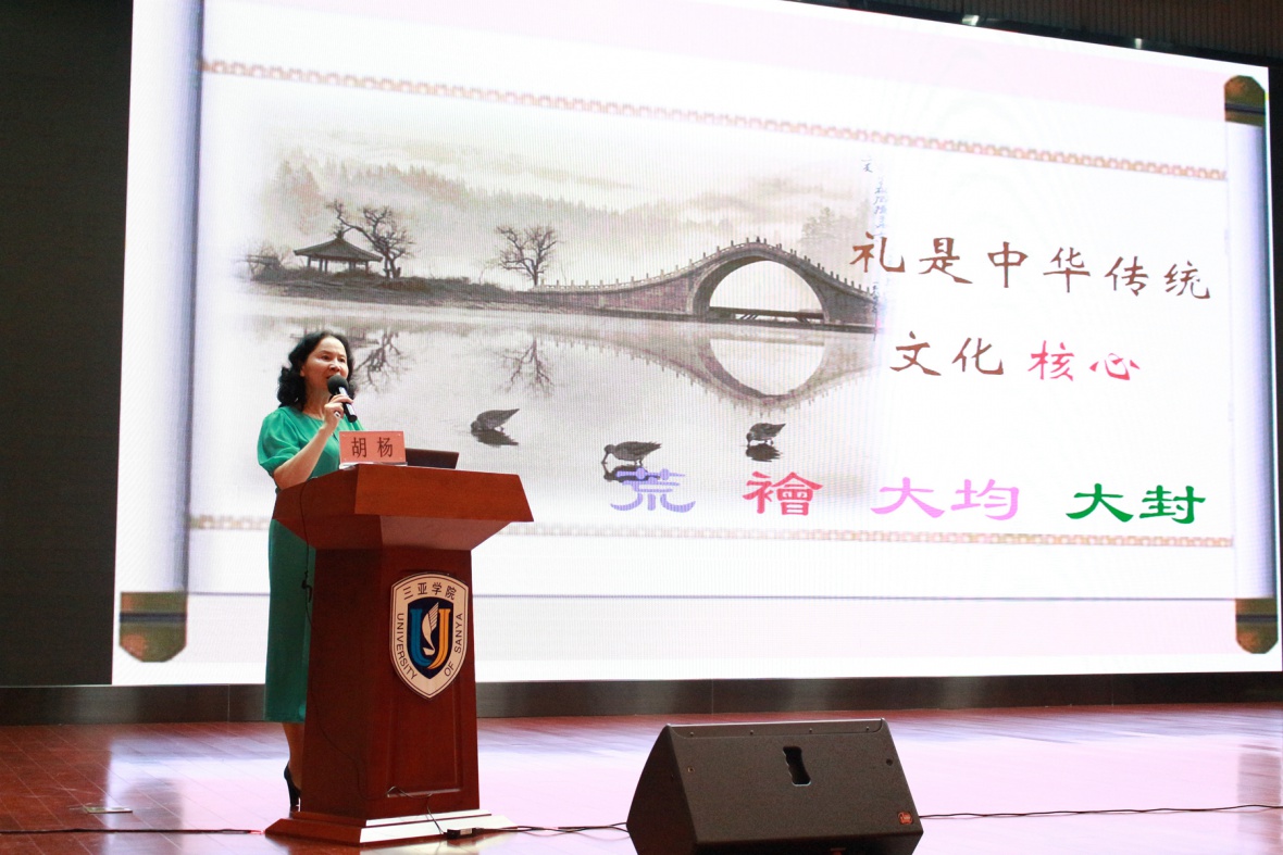 (财经通讯社 讯)2018年3月30日15:00,在三亚学院书山馆大报告厅召开了由三亚学院和三亚妇联联合举办的三亚市“讲文明 树新风 塑形象”女性形象礼仪(专家)讲座。本次讲座由高级礼仪培训师、复旦大学和上海交通大学的客座教授胡杨女士主讲,她的个人魅力深深地折服了在场的每位同学。