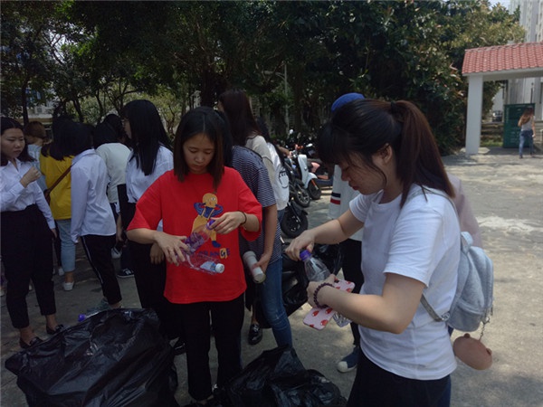 4月2日中午十二点二十,公司金融1601的同学们参与了财经学院青年志愿者协会组织的常规塑料瓶回收活动,短暂的时间里志愿者们回收了许多的塑料瓶,在宣扬环保的同时也增进了同学们的节能意识。