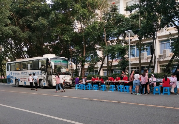 虽然三亚的夏天带着些许的闷热,许多志愿者们汗流浃背,但是我们能充分的感受到活动现场洋溢着的热情,这种热情感染着在场的每一位献血者和工作人员。
