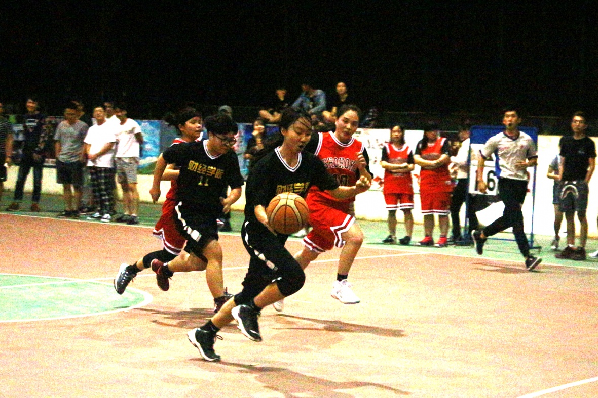 (财经通讯社 讯)2018年4月9日晚上19:30,学校为了丰富广大同学的文体娱乐生活,充分发挥同学们的团队协作精神,增强同学们的凝聚力和自豪感,学院女子篮球比赛在风雨球场多次举行,这次是财经女子组对战管理女子组。