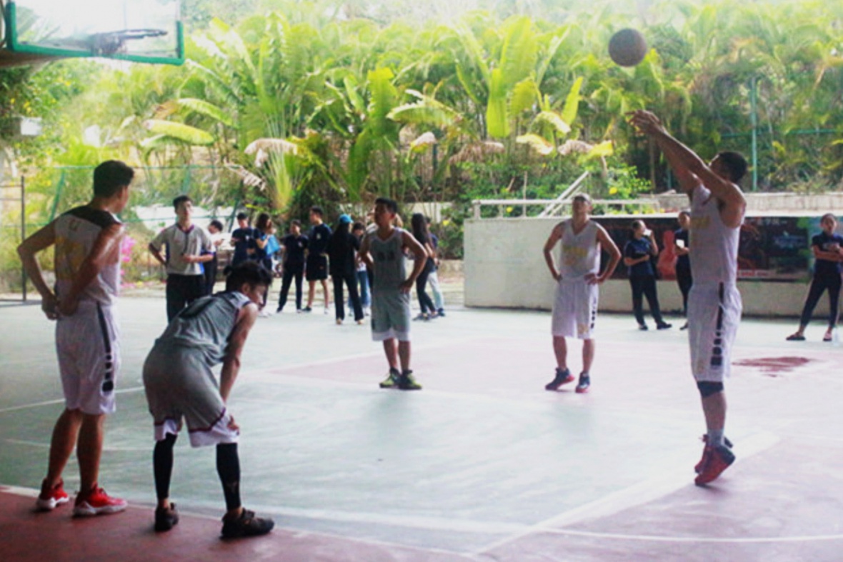 (财经通讯社 讯)2018年4月15日下午4点,在东区风雨球场,财经学院和外国语学院正在进行5v5篮球赛,现场气氛热烈,情绪高涨,最后财经学院和外国语学院以45比27的比分结束了一小时的比赛,财经学院取得胜利。