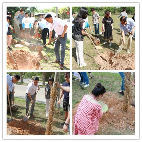 财院的领导和毕业生们首先到达会计学1401的小树下。到了之后,他们立刻撸起袖子,用铁铲、铁锹等工具挖出一个坑,之后几个人合力,抬起小树苗,小心翼翼地放入坑中,盖好土。为了防止小树苗倒塌,领导与毕业生们特意在小树的周围将土踩实。固定好树后,再浇上几次水,一颗小树便种植完毕。随后,领导和同学们马不停蹄的,来到会计学1402的小树下,协助那里的同学完成种植。最后,领导老师与毕业生们与所种的小树合影留念,纪录这美妙的时刻。