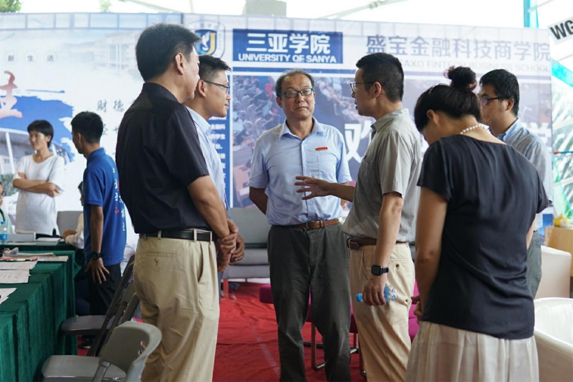 (财经通讯社 讯)三亚的天,阴晴不定,但并没有影响到财经学院学生干部和老师们有条不紊的迎新工作。这是新生报道的第二天,我校陆丹校长、副校长洪艺敏一行,莅临迎新现场,与财经学院院长张光、党总支副书记武宝贵、院长助理王欣亲切交谈,慰问坚守在财经迎新现场的师生们。