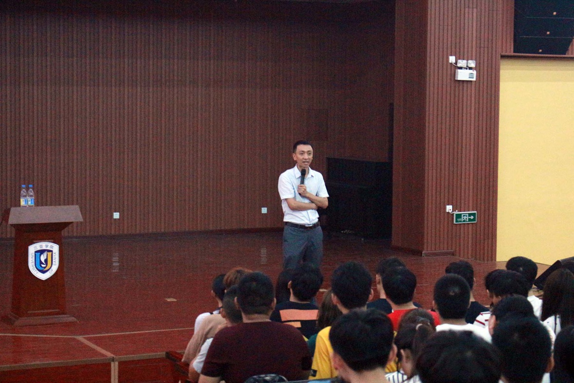 在介绍之前,曹书记先对假期来临表达了一些自己的看法。由于双节假期的临近,曹书记表示新生在假期中千万要注意安全,外出应到导员处做好登记备案,不要去海边游泳。