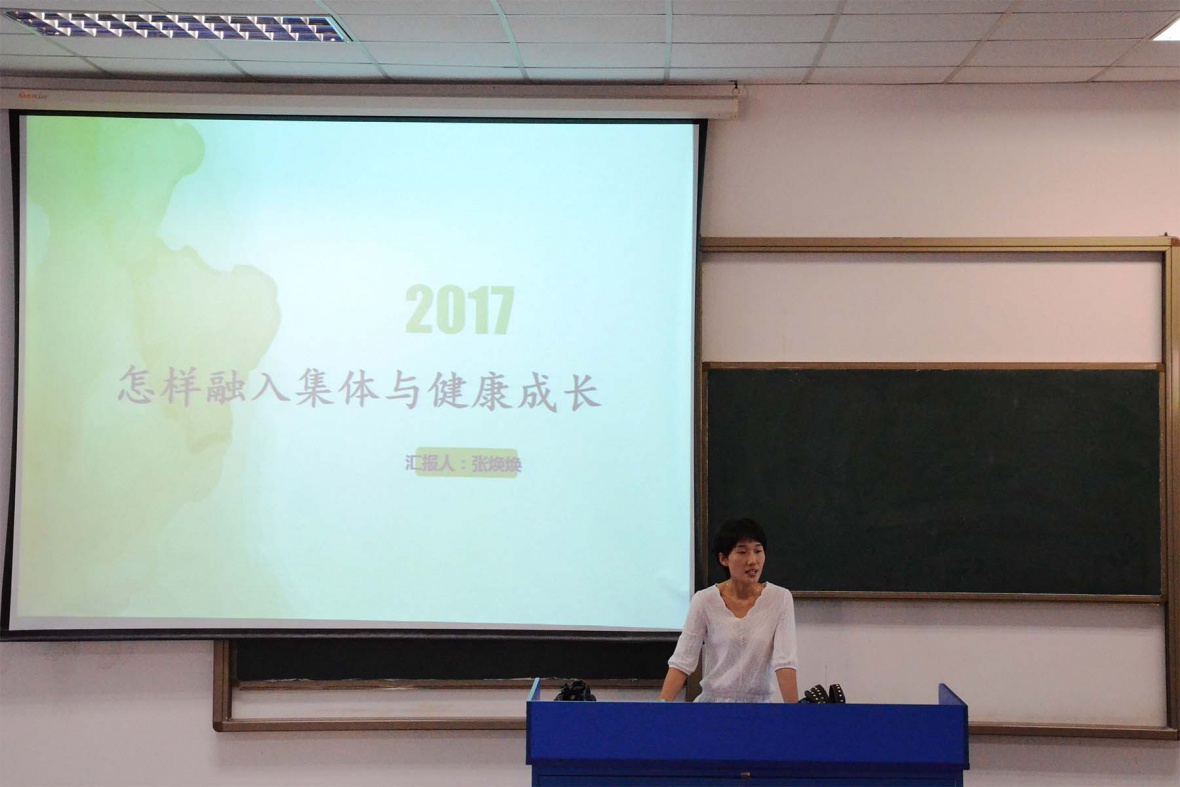 首先,张焕焕老师通过安全问题与纪律问题两个方面来教导新生如何健康成长。由于临近假期,张老师便借此告诫在座的同学们假期出去游玩一定要注意安全,小心防范。谈到海上安全问题时,张老师通过自己亲身经历的一件学生遇难事故,来告诫新生们假期期间不得下海。而在纪律问题方面,张老师说明,由于新生们已经成年,自己不会像高中老师一样,而是希望新生能有自制力,能够严格执行学生手册上的内容,并表示,之后她都将会对同学们严格要求。