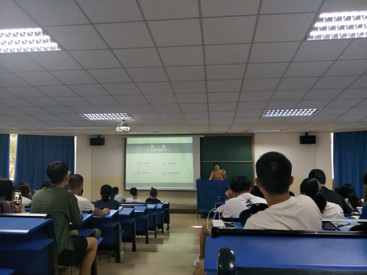班会开始前,屈导员先为大家介绍了新学期的实习导助——会计1705班王正宏、会计1708班穆航,希望大家在接下来可以配合导助工作。班会中首先提出了新学年班委职务的重新调整,因为大二相对大一已经彼此熟悉,一个班不需要10个班委,因此从原来的10个精简为7个,去掉副班长、合并文艺委员和体育委员、由生活委员兼任心理委员,这样避免人浮于事。然后为大家分析总结了上学年的学习成绩,对于有显著进步的同学给予了表扬,对退步过大及两学期全部挂科的同学提出批评,并表示在国庆后会一一谈话,了解原因,针对每个人具体学习问题提出在大二新学期中具体改善的建议,帮助指定学习计划,督促进步。导员还特别提醒同学们在以后的学习生活中应当严于律己,改正不良习惯,养成独立思考的能力,努力提高个人素养。之后屈导员重点强调了这两天需要准备的工作包括综合测评、贫困认定、奖学金认定,并为大家具体讲解了综合测评的主要内容、评定方法、加分政策等。最后,屈导员梳理了本学期需要做的主要事务,希望大家可以提前做好准备。