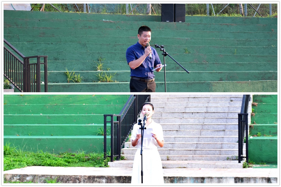 图为新生代表王迎新同学以及校团委书记赵晓乐老师发言