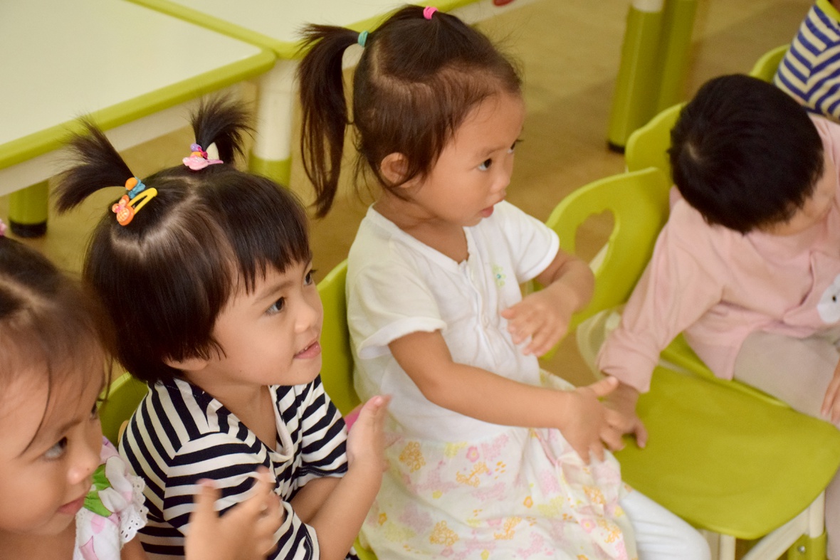 随后,志愿者们教小朋友们唱《我爱我的幼儿园》。在志愿者们的带领和细心教导下,小朋友们逐渐地学会了这首歌。有些小朋友们在合唱时嗓门洪亮,也有些小朋友害羞,但最终在其他小朋友以及志愿者们的帮助下,学会了这首歌。之后,小朋友们还跟着志愿者们,一起做了手指操,很快小朋友们就学得有模有样。