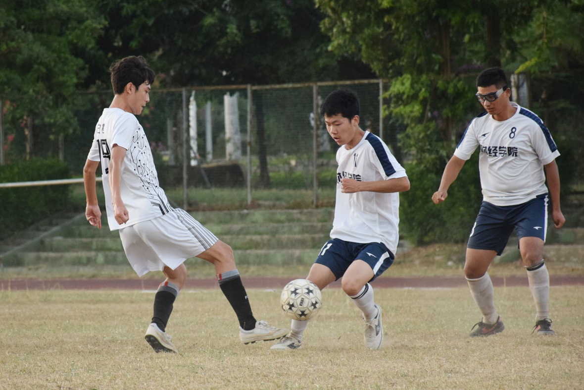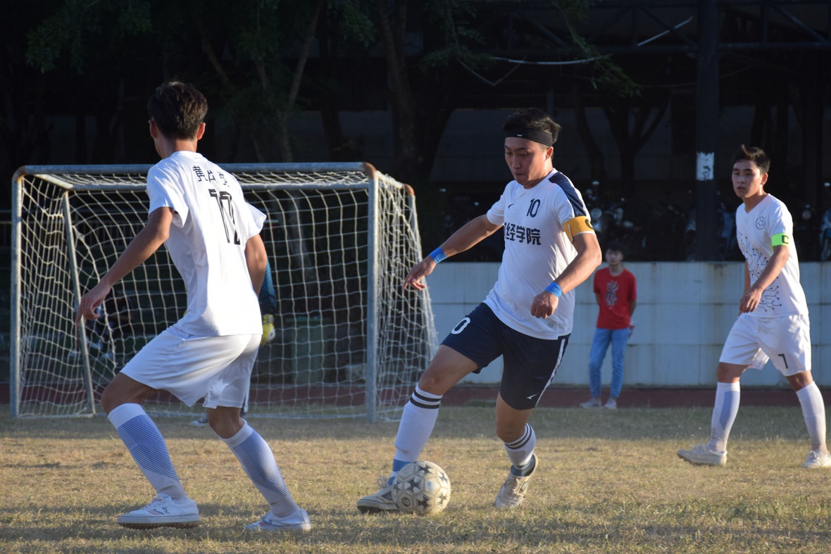而11月17日进行的小组赛第二轮,财经学院挑战信智学院。在上半场比赛中,双方你来我往,实力强劲,在信智学院拿下一分后,财经学院通过队员间的相互配合与娴熟的运球迅速将比分扳平。到了下半场,财经先发制人,反超比分。但信智学院突然发力,连得三分。面对信智学院严密的防守与猛烈的攻势,财经学院并没有气馁,一次次的冲击对方防线,并最终成功攻入一球。只可惜,财院没能完成反击,以3:4的比分憾负于信智学院。