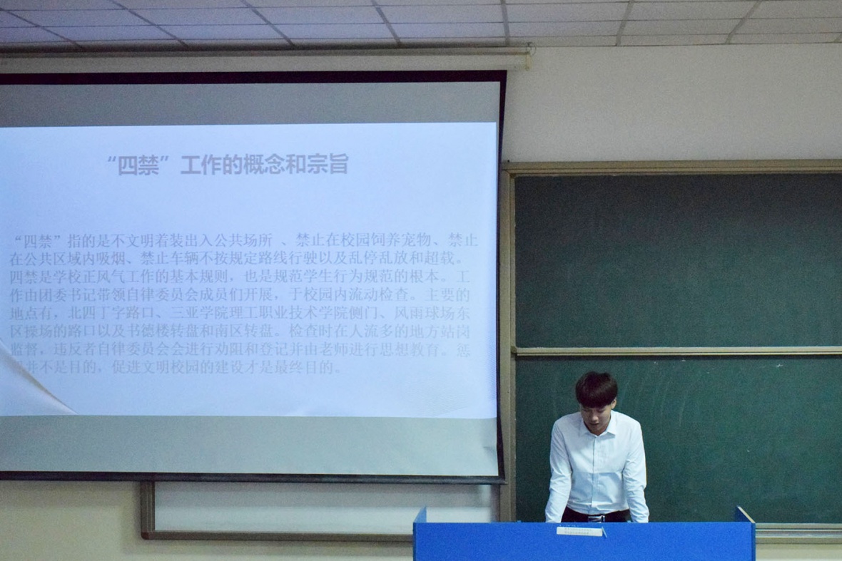 图为学生会自律部部长胡琪洁讲话