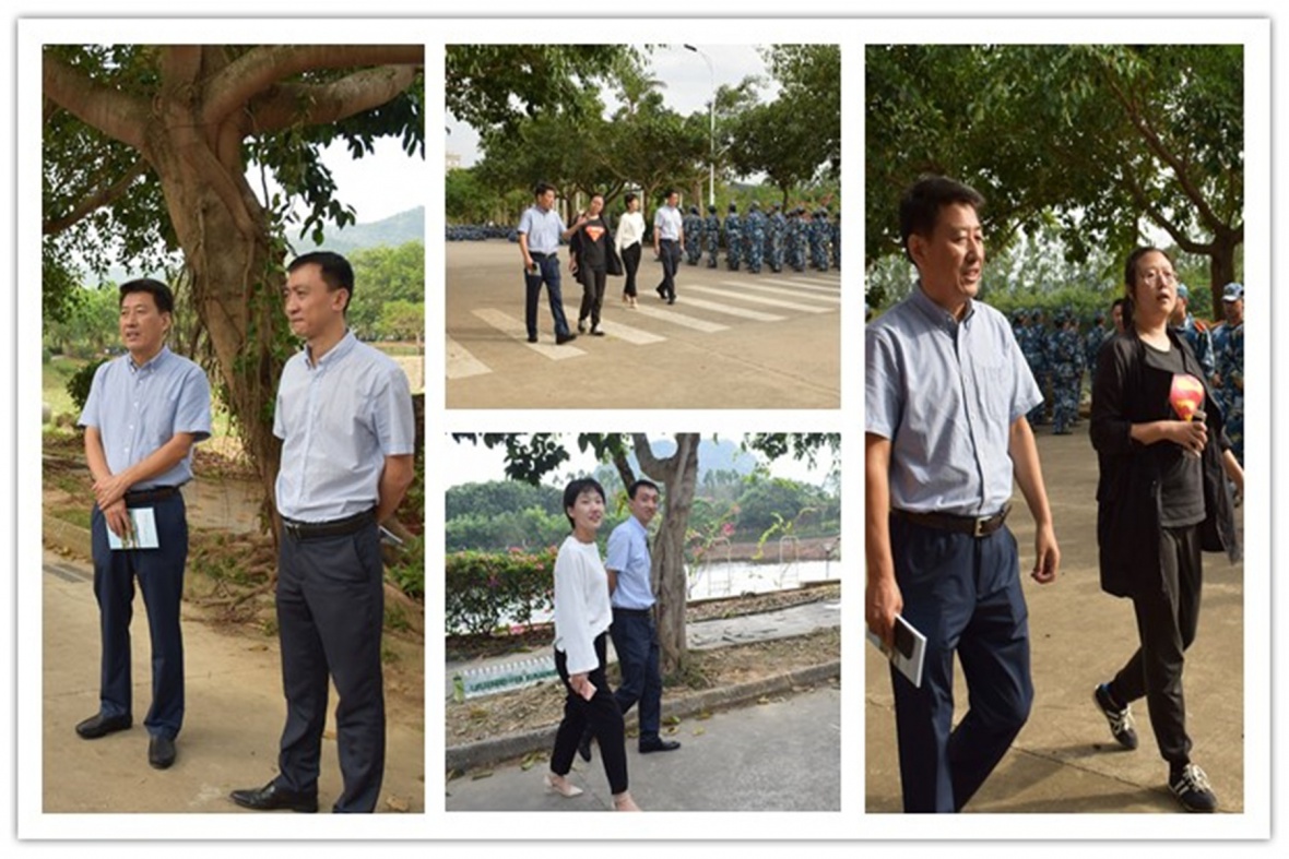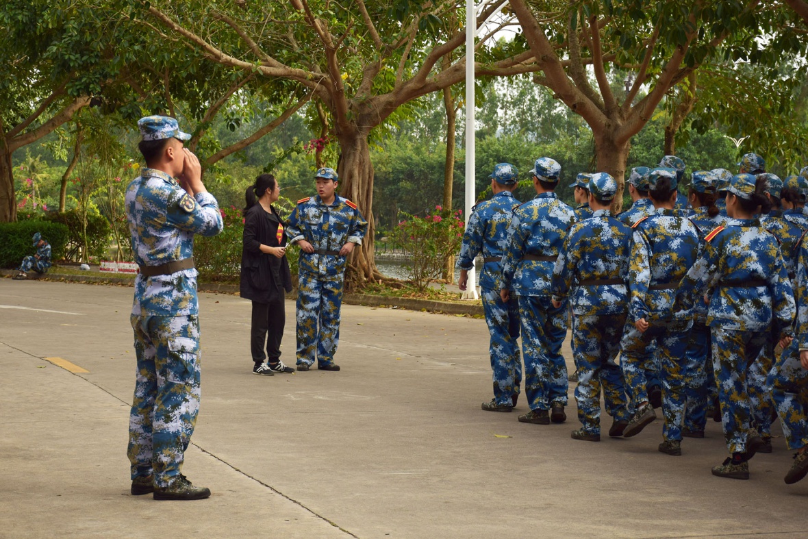 下午两点半在落日广场汇合后,领导老师们开始了此次的军训走访。领导老师们走访了每个班级阵营,对同学们的着装是否完整、动作要领是否正确整齐等各方面做了详细地检查。看到新生整齐划一的动作,听到他们铿锵有力的口号声,领导老师们的脸上露出了欣慰的笑容。