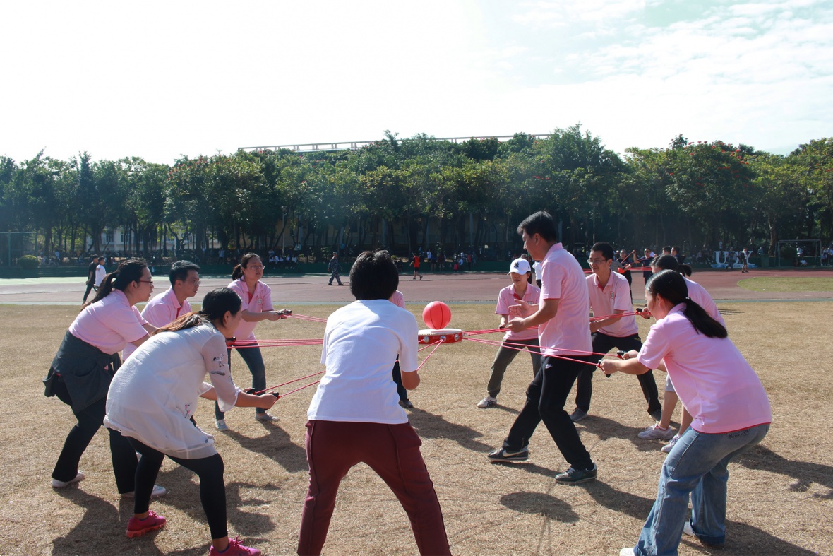 比赛开始前,老师们认真观看其他学院的队伍,并且进行练习。大家相互指导,不断磨合,从一开始的手忙脚乱,到最后颠球次数越来越多。在比赛中,老师们拿出最好的状态,互相鼓励,齐心协力,平衡控制,用他们的智慧和团结,把鼓面与球完美的结合在了一起。最终财经学院的老师们接球141个,获得了第三名的优异成绩。