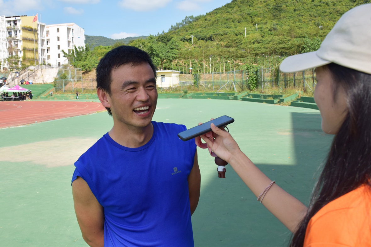 最后,刚刚获得男子200米决赛第二名的刘运良老师也接受了采访。在谈到比赛的感受时,刘老师提到此次体育欢乐节高手林立,比赛过程也是更加激烈。对于第二名的成绩,刘老师表示非常满意,但仍然有进步的空间,十分感谢那些为他加油的老师和同学们。对于此次体育欢乐节,刘老师感到收获颇丰,并指出财经学院的氛围总是让人很暖心。