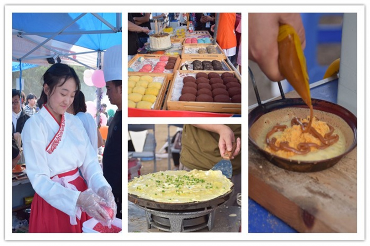 吃货节,不仅仅是各学院将所负责省份的美食展现出来,更是风俗文化的交流。充满民族风味的服饰和舞蹈,在老北京街头卖糖葫芦的大叔,踩着高跷的西域小丑,跳着采薇的汉式舞女。美食让不同的文化互相碰撞,互相交融,同学们在品味美食的同时,感受不同文化的新奇。不仅如此,吃货节还展示了许多儿时游戏:跳皮筋,套圈圈,踢毽子等。当人们回味儿时美好回忆时会发现,童趣本身也是一种美。