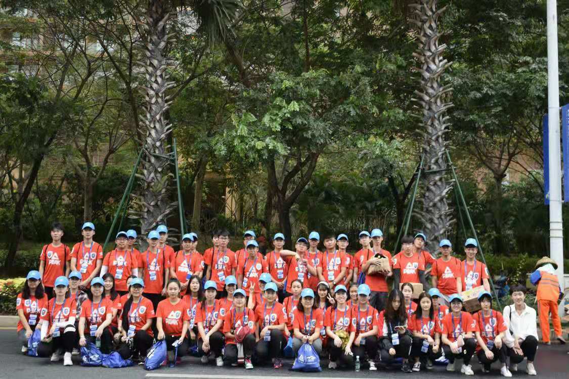 图为志愿者们与参赛者的合照
