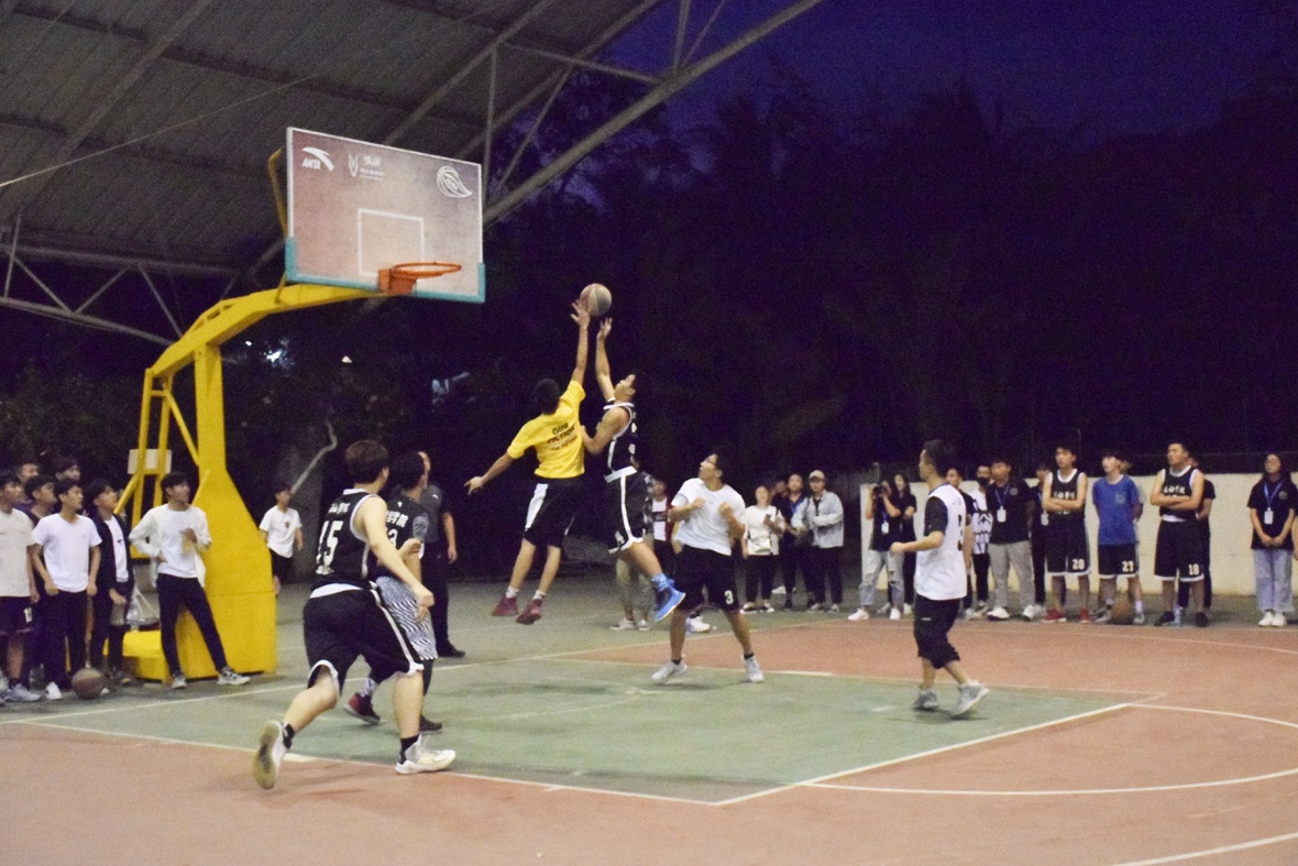 第二天晚上,男篮比赛如约而至。随着裁判一声哨响,比赛开始。同学们热情高涨,加油声和呐喊声此起彼伏,这也带动了场上球员的热情和积极性。财院的小伙子们在赛场上奋力拼搏,虽然以4:10的比分惜败法社学院,但勇气可嘉,精神可舞。