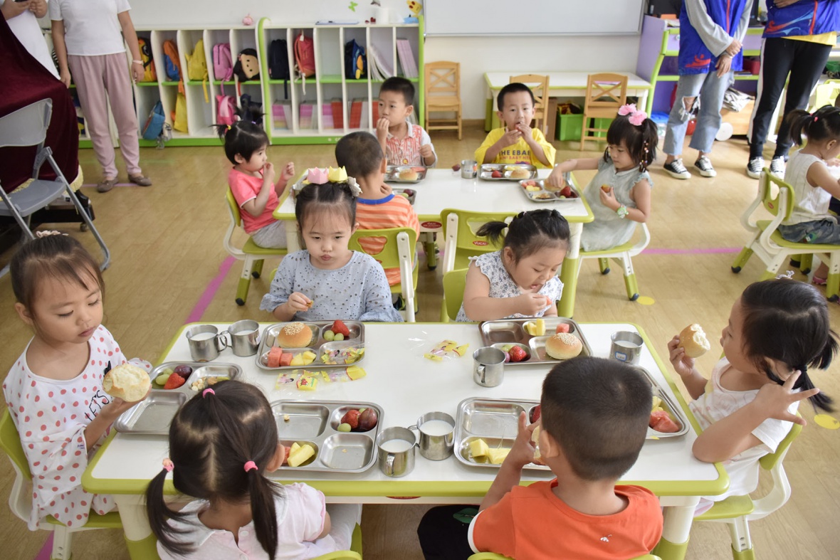 图为小朋友们在吃午餐