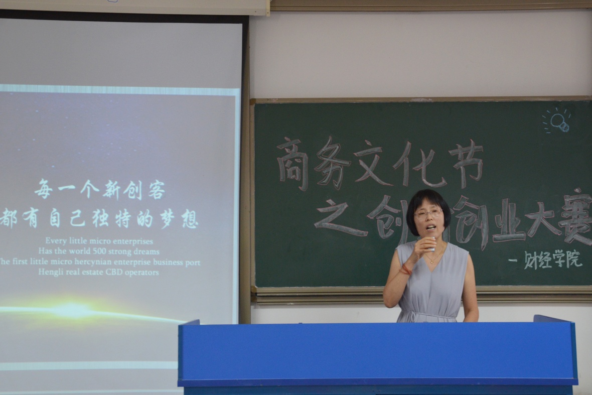 比赛开始之前,张慧芳副院长上台致辞。张副院长结合自身辅导创业项目的经历,讲述了创新创业大赛的重要性以及比赛中的一些细节,鼓励参赛选手要敢于表现自我,并预祝他们取得好成绩。