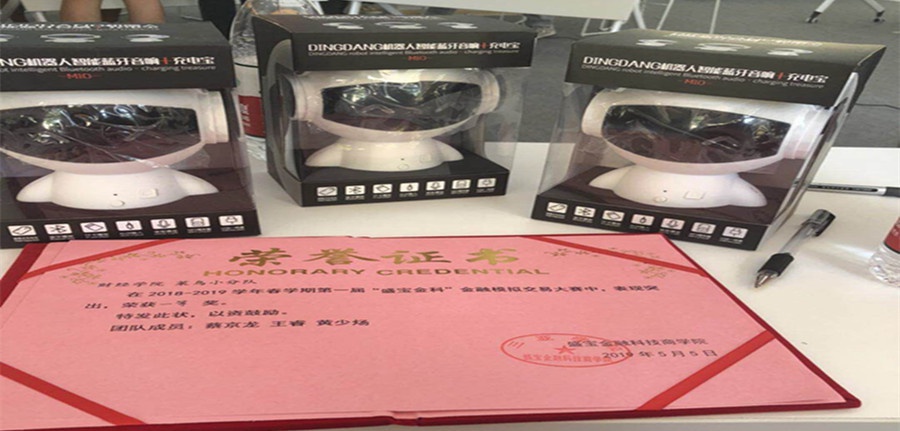 2019年5月5日在盛宝金融科技商学院举行了第一届“盛宝金科杯”金融模拟交易大赛中,我院国贸专业16级学生蔡京龙、王睿、黄少炀组成的“菜鸟小分队”以初赛第三名、现场赛第一名、综合成绩第一名的成绩获得此次比赛的第一名。