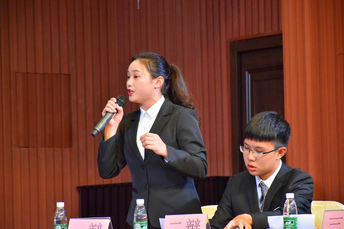 随着比赛的深入,双方的辩论更加激烈,他们各自论述自己的观点,现场氛围十分火爆。辩论结束后,评委老师为双方进行点评并打分。老师指出了选手们在辩论时的优势与不足。最终根据评审团的评分,财经学院以87:85分赢得了本次辩论赛的冠军,成功卫冕。决赛的最佳辩手是正方三辩,本季最佳辩手则是反方四辩。