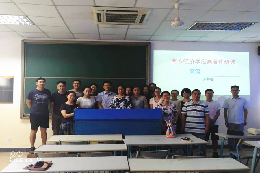 《西方经济学经典著作研读》主讲专家老师是长期从事西方经济学教学和科研的刘静暖老师。她从学科的基本脉络、学科基本研究方法、学科的最新发展动态、学科主要经典著作和如何读经典—以《通论》为例等五个方面做了充分分享交流。同行老师们也在交流中各抒己见,分享了经典著作精读和泛读给科研和教学带来的提升。