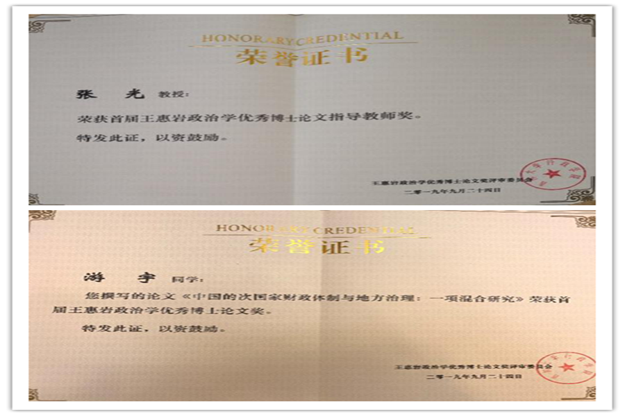 游宇博士在张光教授的指导下,于2016年在厦门大学获得博士学位。他的获奖的博士论文《中国的次国家政府财政体制与地方治理:一项混合研究》,主要从财政资源在省级和省以下纵向各级政府之间的配置与不同导向的支出比重,对地方治理绩效的影响所展开的研究。该博士论文对涉及的因果链条所作的理论阐述和实证验证,颇具创意,且研究方法精当、资料运用丰满。而且,该论文在2016年提交并顺利完成答辩后,也得到了学界的好评,被评为2016年福建省优秀博士论文。