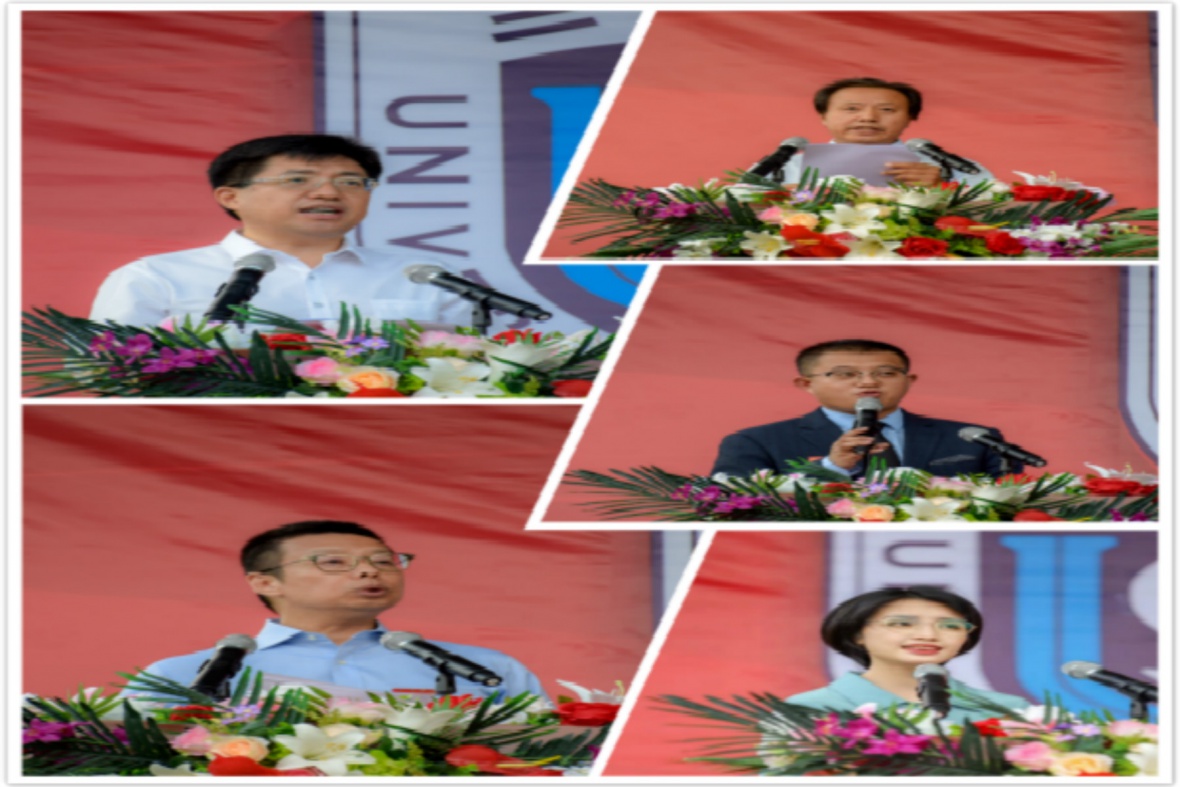 开学典礼以整齐军鼓礼仪队的整齐的鼓声与《成功是欢乐的海洋》歌声拉开序幕。首先三亚市委副书记、市长阿东为开学典礼致辞。阿东市长向全体新生介绍了三亚的风景和历史,说明了我校近几年的办学成果,并鼓励全体新生努力学习。