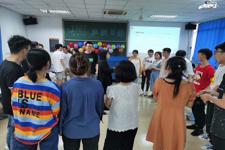 接着,班委策划一些娱乐活动,诸如“记忆考验”,“合力吹气球”等,号召全体同学参与到游戏中。记忆考验游戏开始前,主持人将全班同学分成8个小组,平均10人一组,先是在组内进行名字记忆,然后从第一个开始说自己的名字,第二个就说我是***旁边的***,第三个就是我是***旁边的***旁边的***,以此类推,到最后一个。说不出来的罚发个小红包或是唱首歌,这样很快下来,通过游戏大家就记住了彼此的名字。第二项游戏我认为是特别逗的,他需要每个组派三名同学,再两两组成六名同学抽签分别由谁捏着气球,谁抓着气球以及大家一起合力将一名同学抬起压爆气球,最后看谁完成的多。这项小游戏中的合力拼搏,迸发着同学之间的合作精神,凝聚着团队的力量,充满着无限创意和斗志。