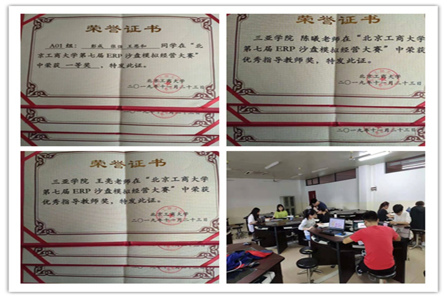 会计专业于2019年11月22日,以企业资源计划课程为平台,组织学生队伍在线参加了北京工商大学组织的ERP企业模拟经营大赛。ERP企业模拟经营大赛的主旨,是通过观察参赛选手基于现场的企业数据分析、诊断表现,考察参赛学生的商业决策能力及企业长期经营规划能力。这一比赛直接与我们开设的企业资源计划课程相联系,同时也和作为前期课程的会计信息系统有非常显著的相关性。这次由北京工商大学举办的ERP企业模拟经营大赛,参赛队伍来自三亚学院、北京中医药大学、中国社会科学院大学、天津工业大学、北京市商业学校、北京市供销学校等六所高等院校,参赛选手有537人。我们的参赛队伍虽然只有三名同学,通常要求每队5名同学,但是他们通力合作,经过持续两天的奋力拼搏,克服了组员较少的困难,取得了一等奖的好成绩。陈曦老师和王亮老师也获得了优秀指导教师的奖励。通过参加比赛,会计专业同学们的学习信心和参加业内知名比赛的信心得到了很大的提高。